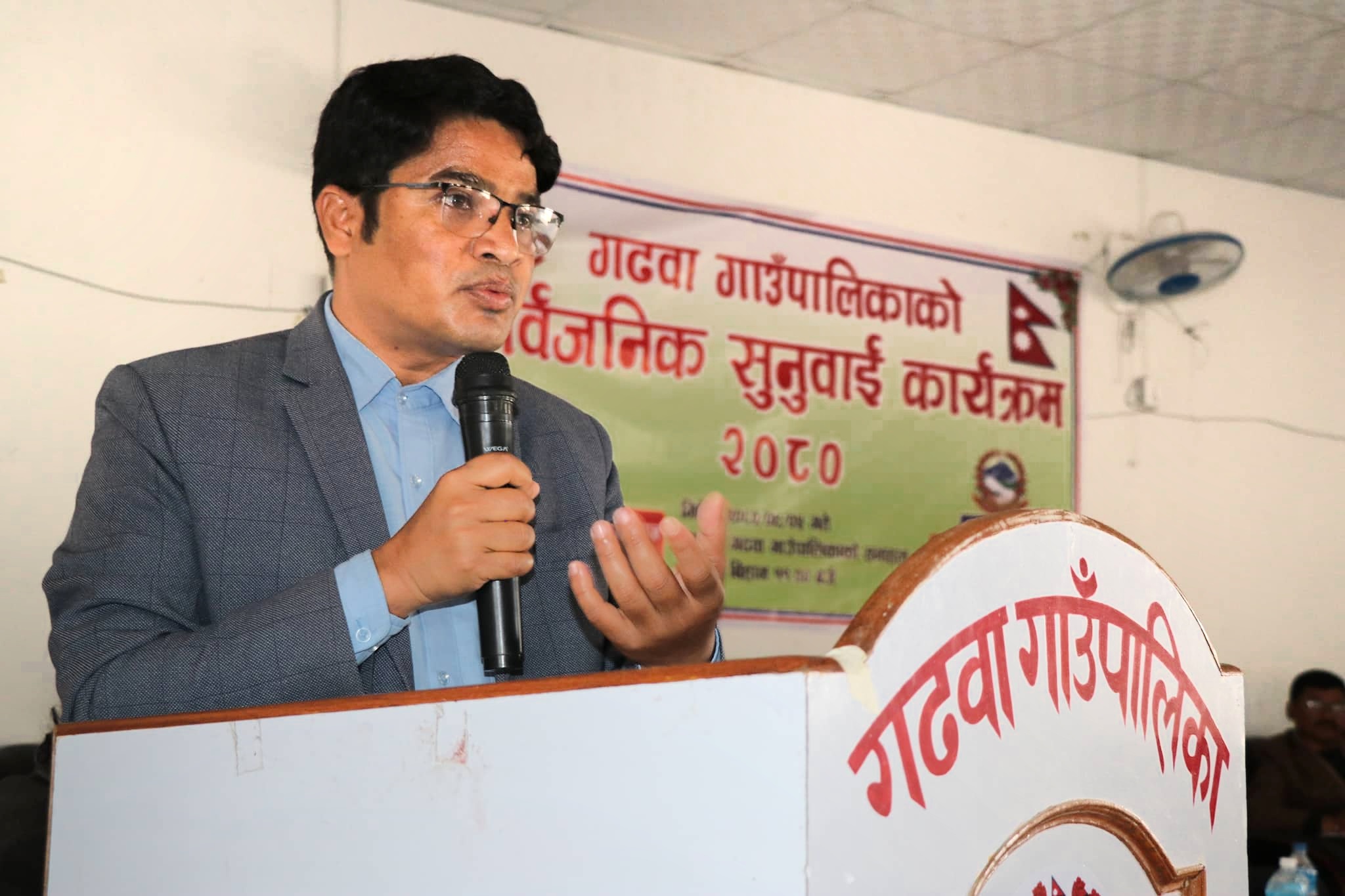 जवाफदेहिताको भुमिकामा रहनुभएको पालिका अध्यक्ष यमनारायण शर्मा पोख्रेलले सार्बजनिक सुनुवाई कार्यक्रममा उठेका जिज्ञाशा तथा सवालहरुको जवाफ दिदै गढवा गाउँपालिका अध्यक्ष यमनारायण शर्मा पोख्रेलले गाउँपालिकाको सेवा प्रवाह र कार्य चुस्ततालाई थप प्रभावकारी बनाउनाफु निरन्तर लागेको बताउनुभयो ।
