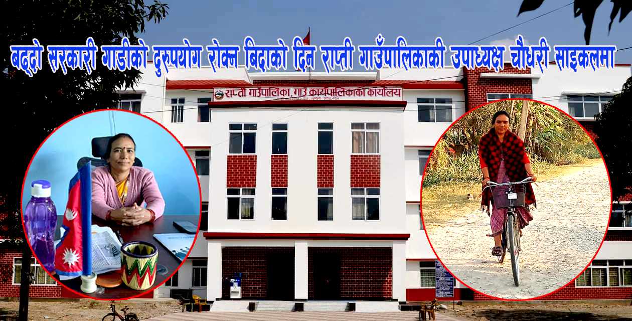कार्यक्रममा जनप्रतिनिधि, पत्रकार र सामाजिक अगुवाहरुलाई समेत निमन्त्रणा गरिएको थियो । सोही कार्यक्रमको निमन्त्रणालाई स्वीकार गर्दै राप्ती गाउँपालिकाकी उपाध्यक्ष कमलापति चौधरी साइकल चढेर कार्यक्रमस्थल पुग्नु भयो । संधैभरि राप्ती गाउँपालिकाको सरकारी गाडी चढेर घर देखि कार्यालय र कार्यालय देखि कार्यक्रमस्थल तथा अनुगमनमा पुग्ने उपाध्यक्ष चौधरी सोमबार भने साइकल नै चढेर कार्यक्रमस्थलमा पुग्नु भयो ।