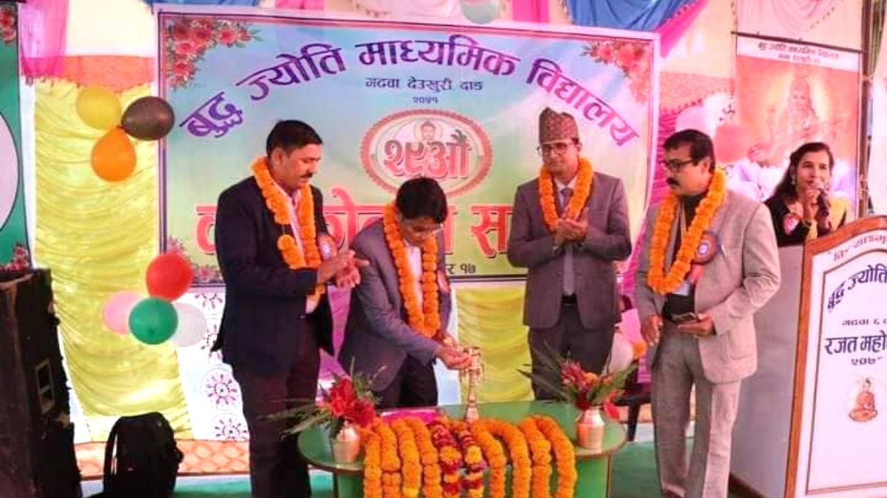 गढवा १७ मंसिर । दाङ देउखुरीको गढवामा रहेको बुद्ध ज्योति माध्यमिक विद्यालयको २९ औ वार्षिकोत्सव आइतबार गढवामा सम्पन्न भएको छ । विद्यालय व्यवस्थापन समितिका अध्यक्ष केशव राम यादवको अध्यक्षता तथा गढवा गाउँपालिका अध्यक्ष यमनारायण शर्मा...