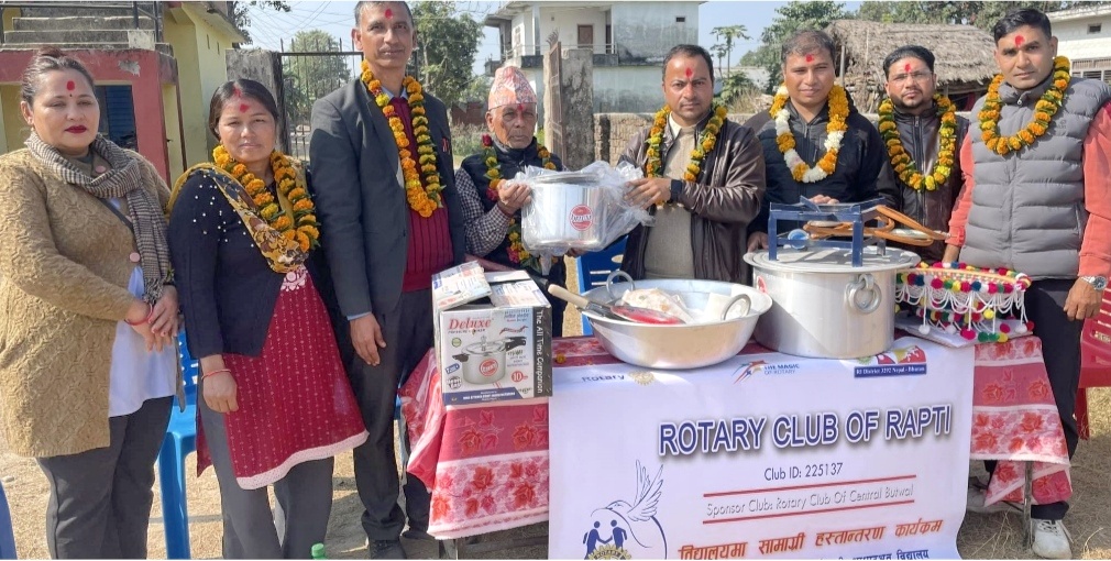 देउखुरी १४ पौष । दाङ देउखुरीको राप्ती गाउँपालिका ३ को एक सामुदायिक विद्यालयमा अध्ययनरत विद्यार्थीको दिवा खाजालाई व्यवस्थित गर्न पकाउने भाडाकुडाहरु हस्तान्तरण गरिएको छ । रोटरी क्लव अफ राप्तीले राप्ती गाउँपालिका ३ मा अवस्थित वि....