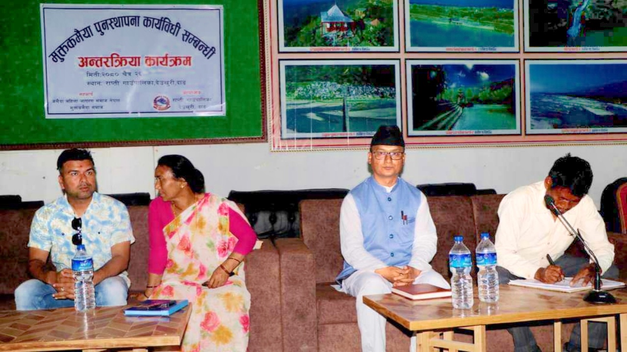 पुरा पढ्नुहोसदेउखुरी २७ चैत । दाङ देउखुरीकाे राप्ती गाउँपालिकाकाे आयोजना तथा कमैया महिला जागरण समाज नेपालकाे सहकार्यमा मुक्त कमैया पुनस्थापना कार्यविधि सम्बन्धि सराेकारवालाहरु बीच अन्तरक्रिया कार्यक्रम साेमबार सम्पन्न भएको छ । कमैया महिला जागरण समाज नेपालकी...