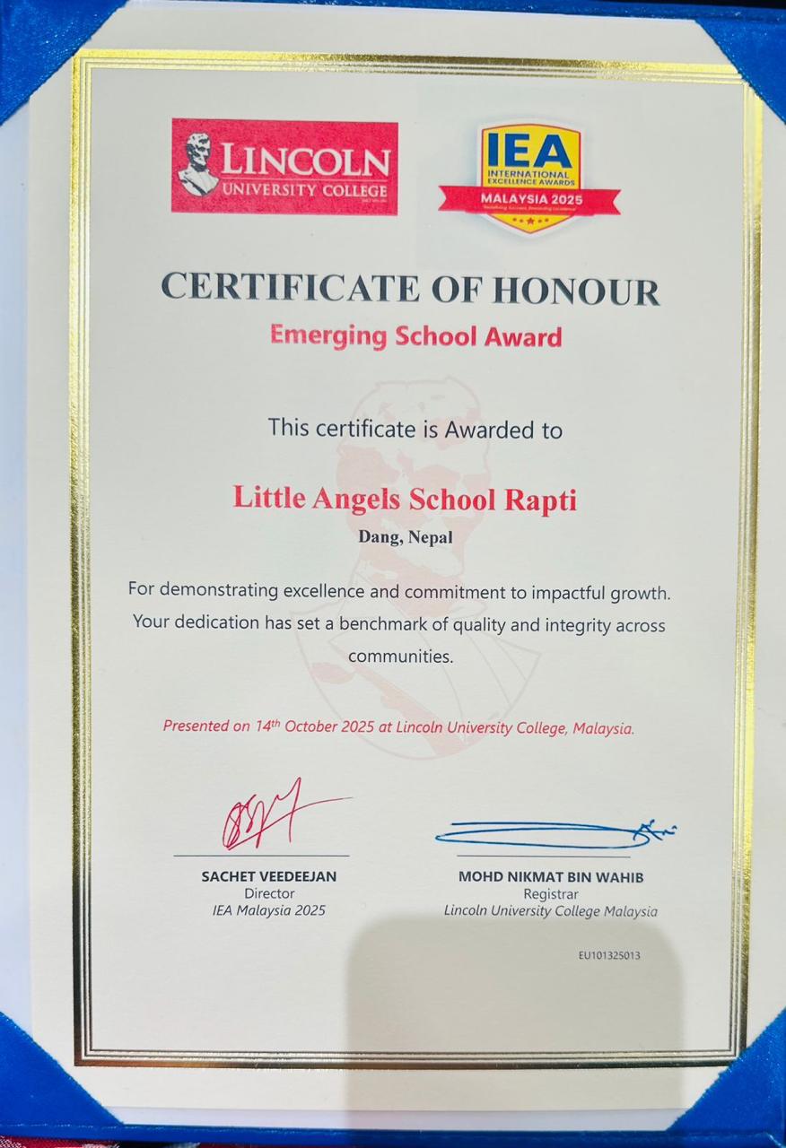 लिटिल एन्जल्स स्कुल राप्तीलाई पहिलो अन्तर्राष्ट्रिय सम्मान