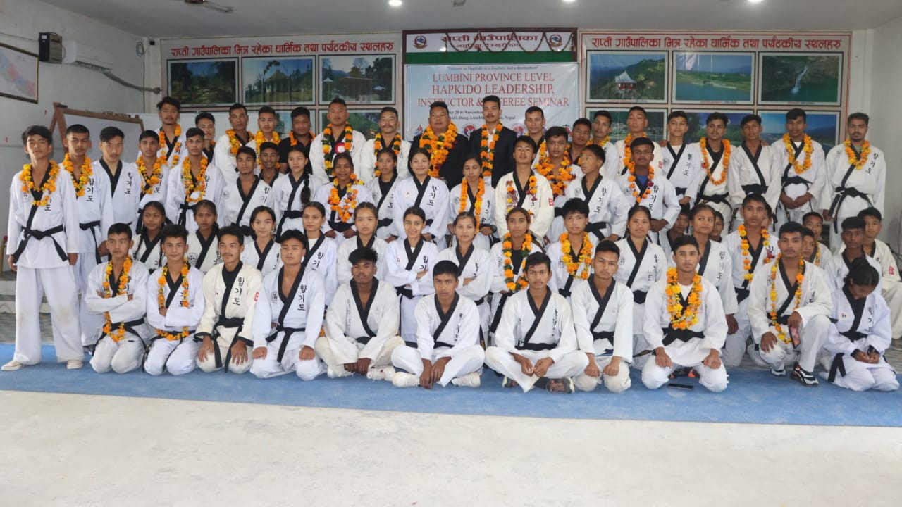 भालुवाङ १२ कार्तिक । लुम्बिनी प्रदेश हाप्किडो संघको आयोजनामा आइतबार देखि दाङको राप्ती गाउँपालिकाको कार्यालय मसुरीयामा प्रदेश स्तरीय हाप्किडो लिडरसिप, प्रशिक्षक तथा रेफ्रि सेमिनार आइतबार देखि शुरु भएको छ ।