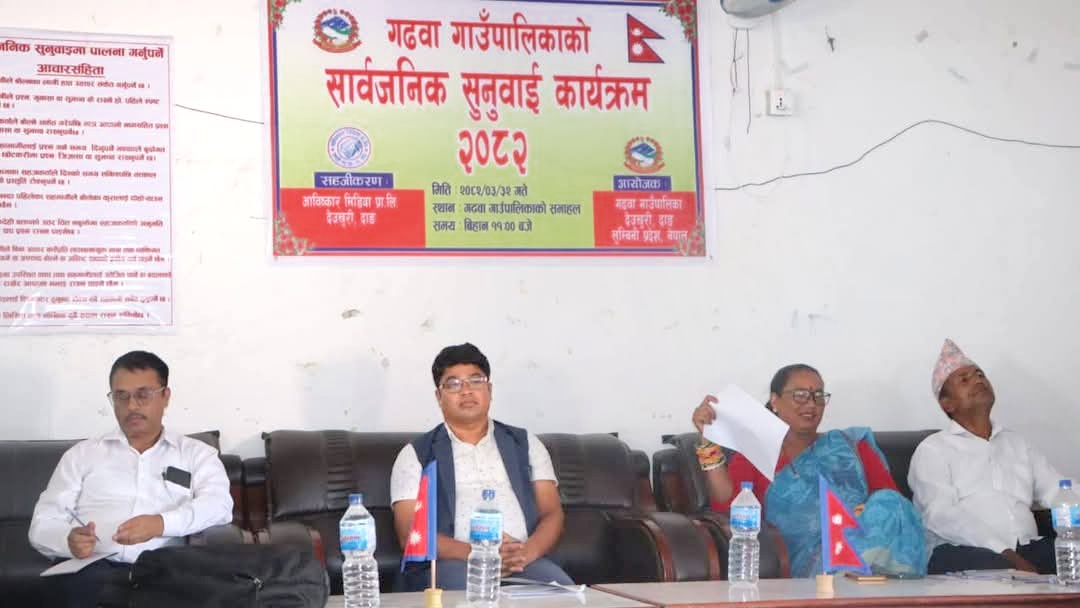 गढवा ३२ असार । दाङ देउखुरीको गढवा गाउँपालिकाको सावैजनिक सुनुवाइ कार्यक्रम गढवा गाउँपालिका वडा नम्बर ६ गढवामा बुधबार सम्पन्न भएको छ । गाँउपालिकाले आर्थिक वर्ष २०८१/०८२ श्रावणदेखि असार महिनासम्म गरेको कामको बारेमा जानकारी र नागरिकको...