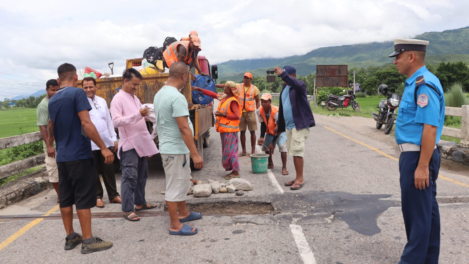 पूर्व पश्चिम राजमार्ग अन्तर्गत पर्ने देउखुरीको दोलई खोला पुलको मर्मत