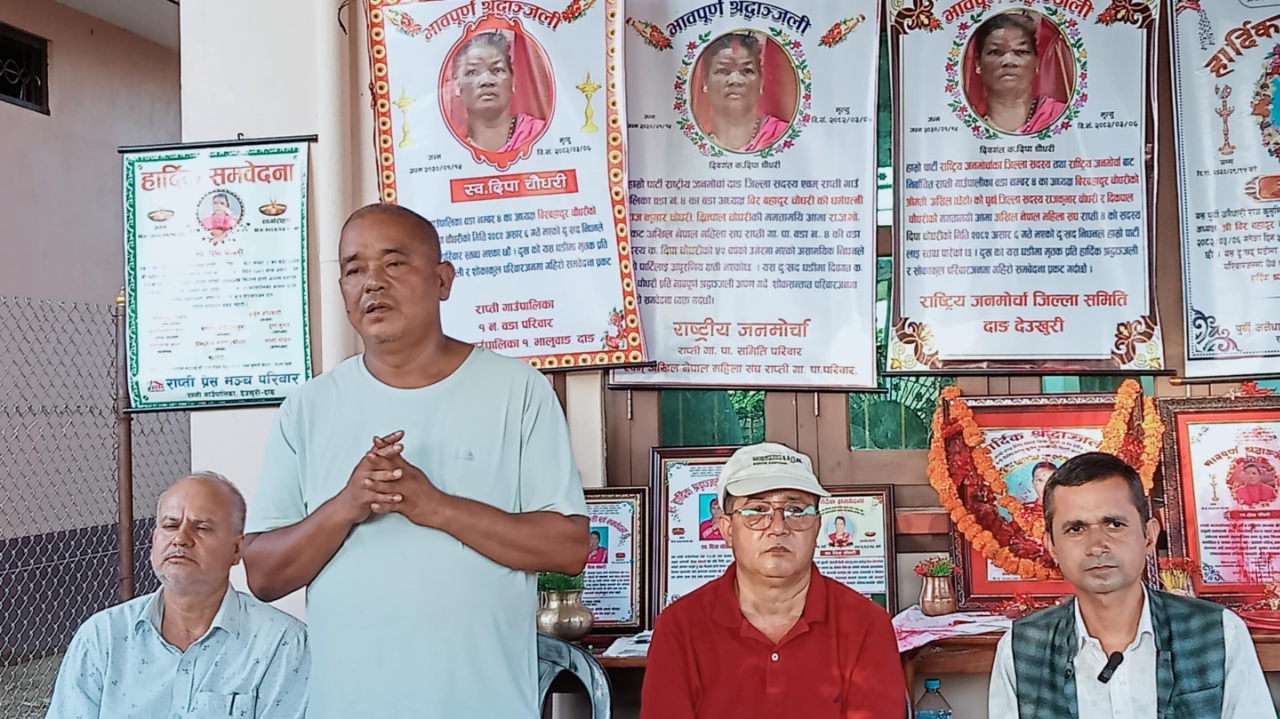 पुरा पढ्नुहोसभालुवाङ । राप्ती प्रेस मञ्चले बिहीबार शोकसभा कार्यक्रम सम्पन्न गरेको छ । मञ्चका अभिभावक राप्ती गाउँपालिका वडा नम्बर ४ का वडा अध्यक्ष वीरबहादुर चौधरीकी जीवनसंगिनी दिपा चौधरीको निधन भएको साताैं दिनका दिन मञ्चले वडा...